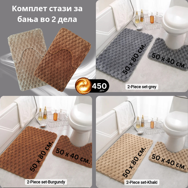 Мек и пријатен материјал со гумена подлога одоздола идеален за долна површина со плочки или керамика.