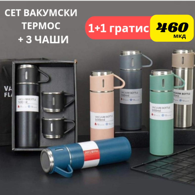 СЕТ ВАКУМСКИ ТЕРМОС 500 мл+ 3 ЧАШИ